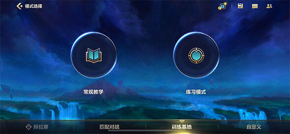 其次,在完成人机训练后小伙伴们就可以自由选择是继续人机训练,或是匹配模式。同时,小伙伴们也可以点击主界面右下角的开始进入模式选择,在模式选择界面可以点击最下栏的训练基地-常规教学,总共有9个不同的教程训练,每个教程都有详细的文字介绍和游戏内的标识辅助操作介绍,小伙伴们可以依次选择进行学习哦。