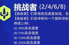 金铲铲之战挑战者什么效果?挑战者是金铲铲之战s6赛季双城传说的羁绊之一,挑战者可以获得攻速加成,那么具体是什么效果呢?下面就让小编为大家介绍一下吧。
