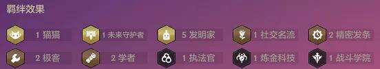 阵容羁绊:5发明家&1猫猫&1未来守护者&2精密发条&2极客&2学者&1社交名流