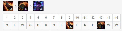 主Q消耗,自然无需多提,副E是因为E技能配合辅助装备可以打出斩杀,让E技能的斩杀效果得以发挥,进而拥有更强的消耗能力。W技能对于辅助打法来说比较鸡肋,点一级就够了。