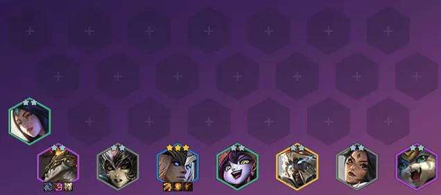 阵容在5人口的时候考虑凑出蔚、龙女、奈德丽、杰斯、娜美5张牌,可以凑出2狂野2海克斯3换形的阵容,这样一个阵容在早期的打击能力是非常强的。尤其是在5~6人口的阶段开始比较容易上3费卡,这样拿蔚和龙女两张关键key卡比较容易上。尽快的抢6人口,保证阵容里的卡都有2星以上的质量,这样可以更好的帮助阵容去打对抗,然后抢7抢8的节奏都会更快,阵容的两张主C是3费以上,所以早期还是以连胜为主,尽快的上8去提升质量最好。