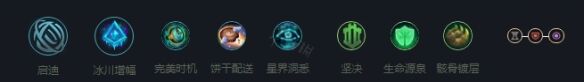 锤石符文选择冰川增幅,下面第一行选秒表,锤石带海克斯闪现的收益比较低,因为Q技能抬手时间太长。第二行必点饼干,对线前期会比较缺蓝,并且有饼干在空蓝可以欺骗对方,在打起来时吃饼干可以瞬间回复一个技能的蓝量,第三行星界洞悉。副系点坚决,第一行点生命源泉,第二行点骸骨镀层,有的会放弃生命源泉选择第三行的过度生长。