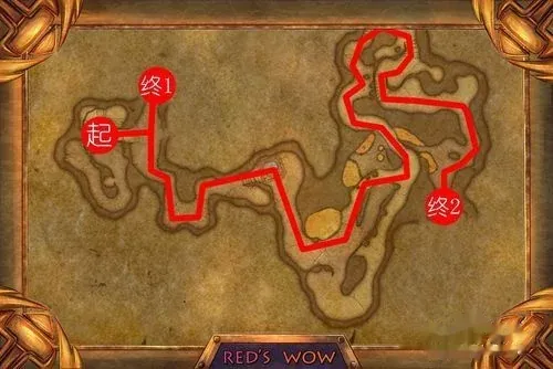 方法/步骤2:进入凄凉之地的玛拉顿标识处后发现里面是一个洞穴,这个洞穴里就有玛拉顿副本的入口,玛拉顿一共有两个入口,下图的终点2就是其中一个入口(橙色)。