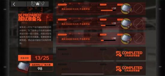 而对于非首次参与活动的博士们,在重新刷取活动关卡后依旧可以获得【越狱准备】内的所有奖励,加上刷取可获得的工厂铁片,共可以获得1308个工厂铁片。