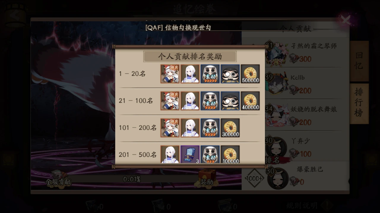 依据以前鬼切绘卷活动的经验来看,绘卷活动撇开第一卷以外,别的绘卷想进到前500你没个7000分照样别想了,换句话说最少要抽蓝票400张得到了的碎片数目搭配每一天肝上2000分以上才可以拿下这一个皮肤。对官网的这一行为,能够说引发了游戏玩家的强烈不满,坚决开始了微博爆破开喷的玩法,示意官网大有把周年庆成为周年祭的味儿。