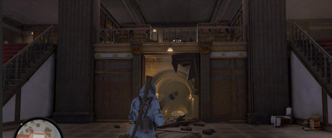 大学图书馆里有个木门能用炸药炸开,跑进去杀八九个人就能找着。