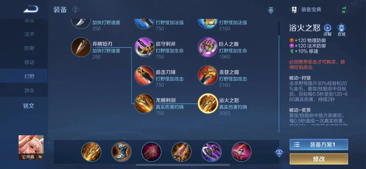 在升级完大野刀之后。公孙离在出一把攻速鞋。 之后再出一把末世,增加攻速以及吸血能力。接着再出一个暗影战斧,减少自身技能的冷却时间,让她变得更灵活。然后再出一把无尽之刃,增加暴击率以及攻速、攻击力。最后再补一把破晓,提升打坦克能力即可。