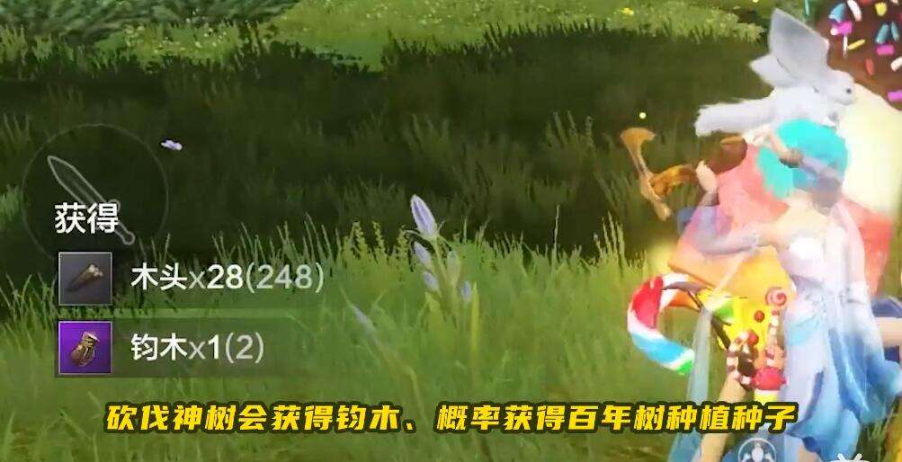 1、要想种树,首先要获取种子,可以使用华霆斧砍伐大世界新增的神树;