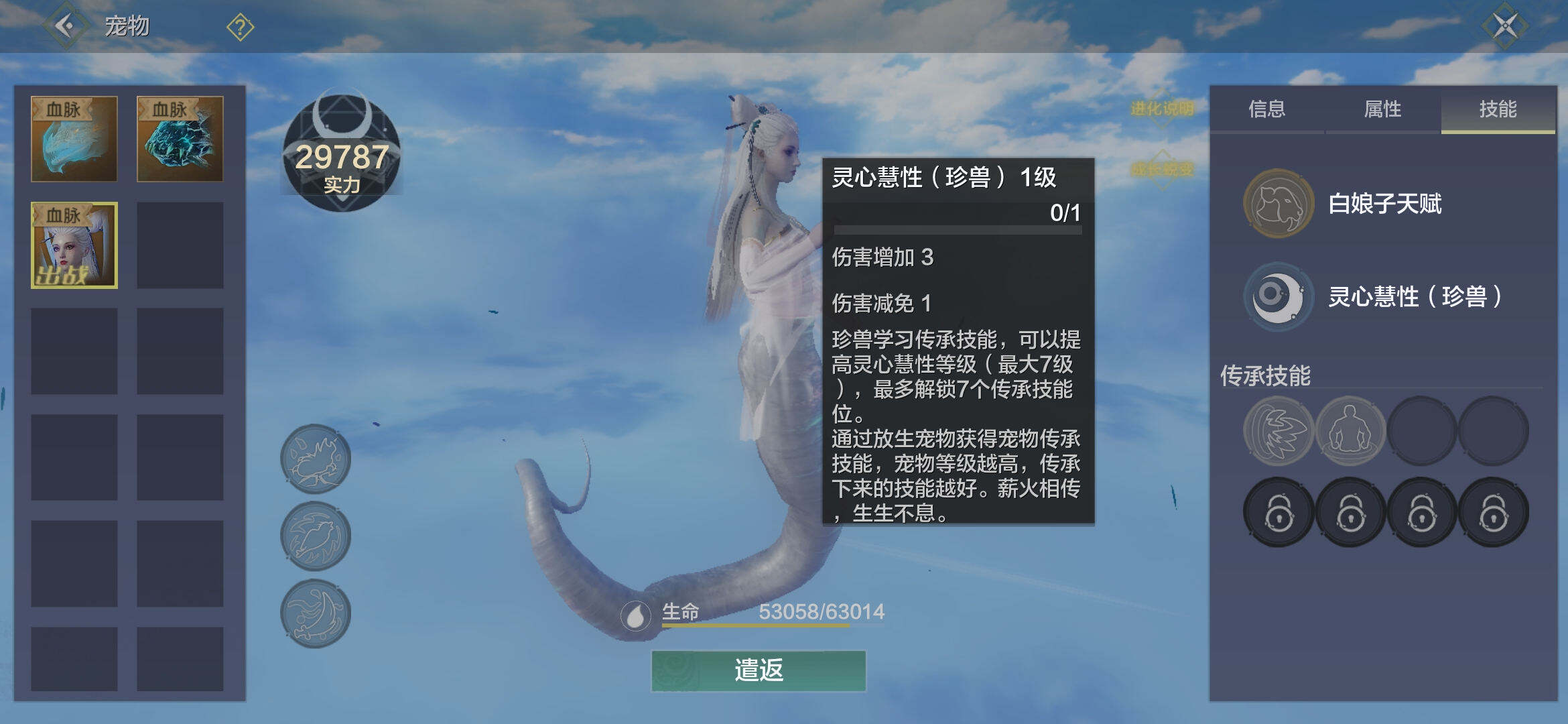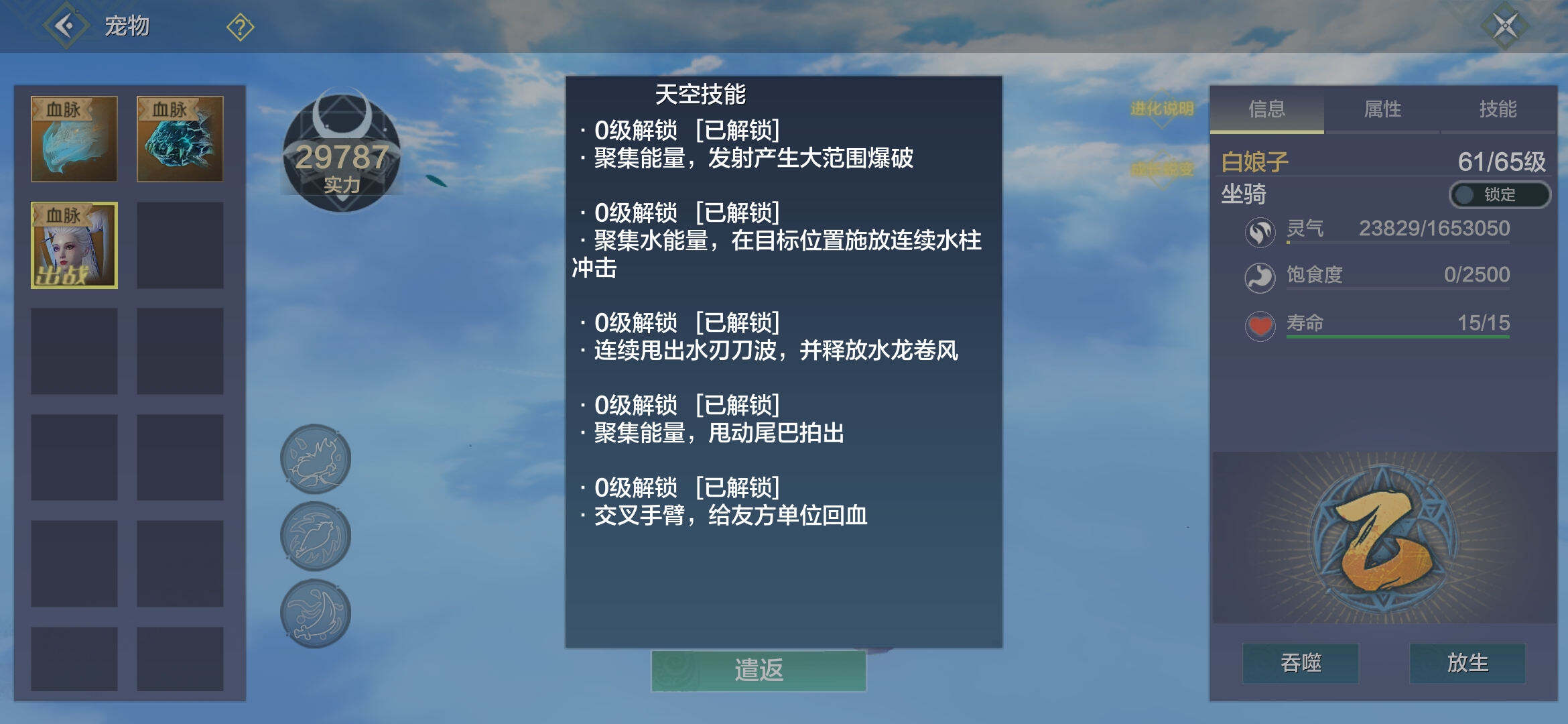 1、白娘子天赋:和进化宠物一样,百分之五转化率。