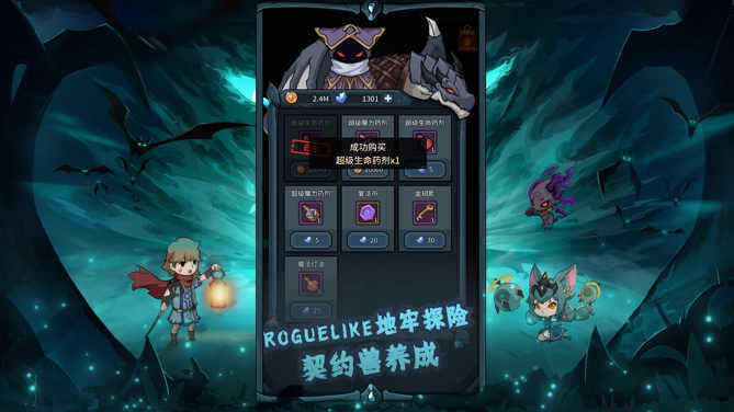 4、不过游戏中可以携带契约兽,使用宠物作战,大家在黑暗的地牢,也不会感到孤单。