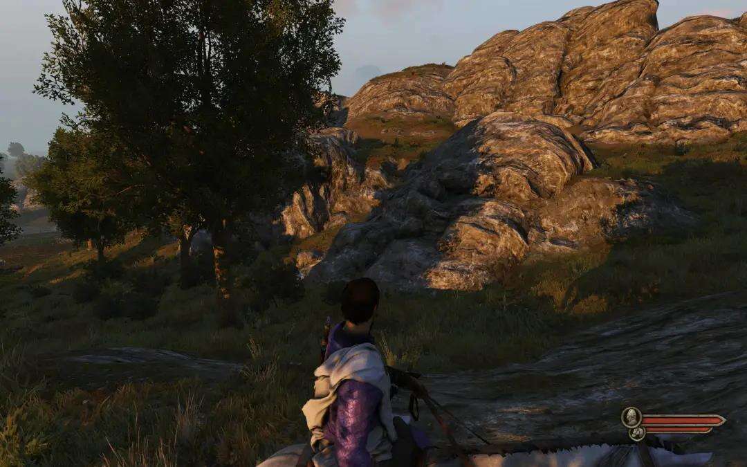 1、进村左边牛圈,沿着牛圈往上走有个小山谷,山谷里有个凸出的石头那里。