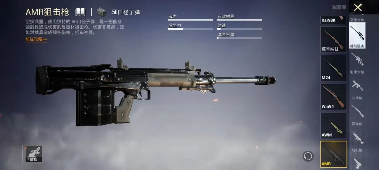 AMR是使用的全新.50口径子弹,这点和AWM一样用的专属子弹,让AMR的子弹非常宝贵,甚至比马格兰还要更宝贵。