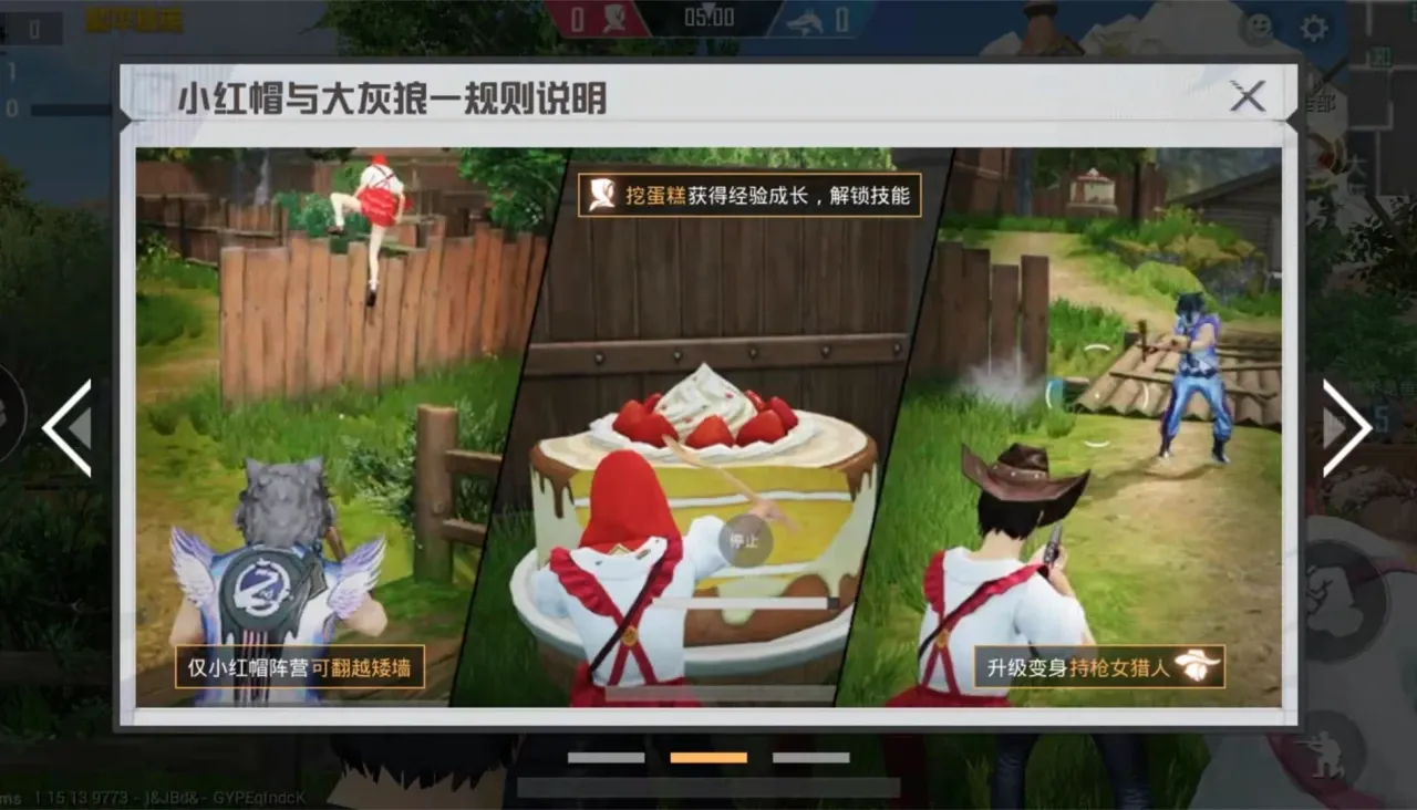 游戏中会有蛋糕和宝箱出现,蛋糕对于小红帽玩家是福利,对于大灰狼玩家就是摆设,小红帽玩家看见蛋糕就可以去挖蛋糕,除了获得经验成长之外,还可以解锁技能,其中升级变身成为持枪猎人就是技能之一,这时的小红帽就可以击毙大灰狼了,而且小红帽玩家还有专属的技能,就是可以翻越矮墙,大灰狼玩家还是不可以,不过大灰狼玩家可以撞破宝箱,解锁道具,有的是捕兽夹,有的是双倍伤害,游戏中大灰狼有时候会突然减速,那一定是小红帽吧马蜂窝弄掉了,小红帽经常利用马蜂窝躲避大灰狼的追击。