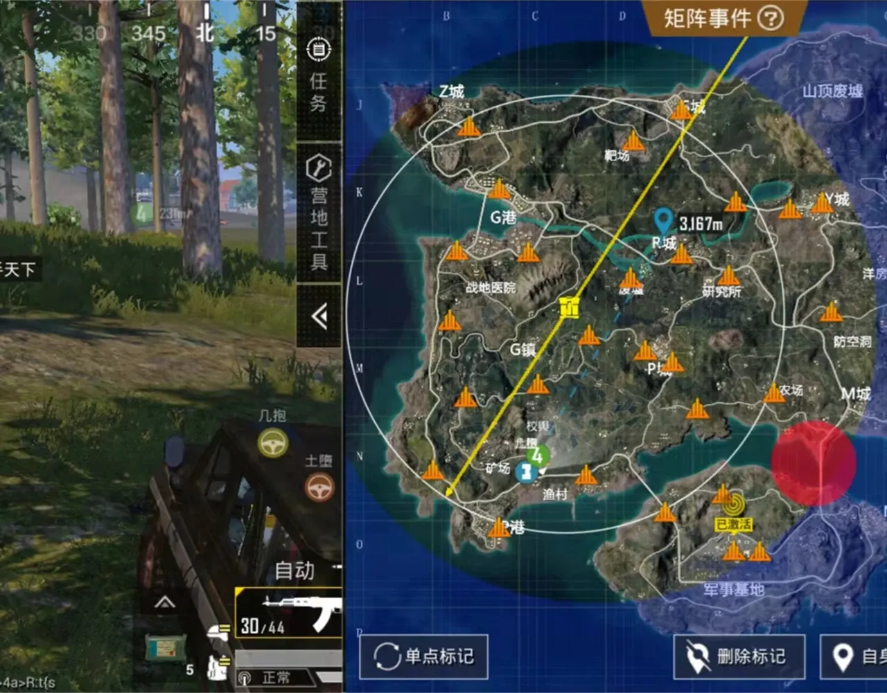 在矩阵基站外面,有很多的新型信号塔设备,每个基站可以召回一个队友,战斗中的小地图会给玩家提示的,在安全圈内,会有黄色的光圈,黄色的光圈就是战斗最热闹的区域,拥有更加丰富的物资和战区物资箱,小地图中的黄色的箱子,就是矩阵补给,也就是玩家们常说的空投标识,而且比普通补给更加丰富的奖励哦。