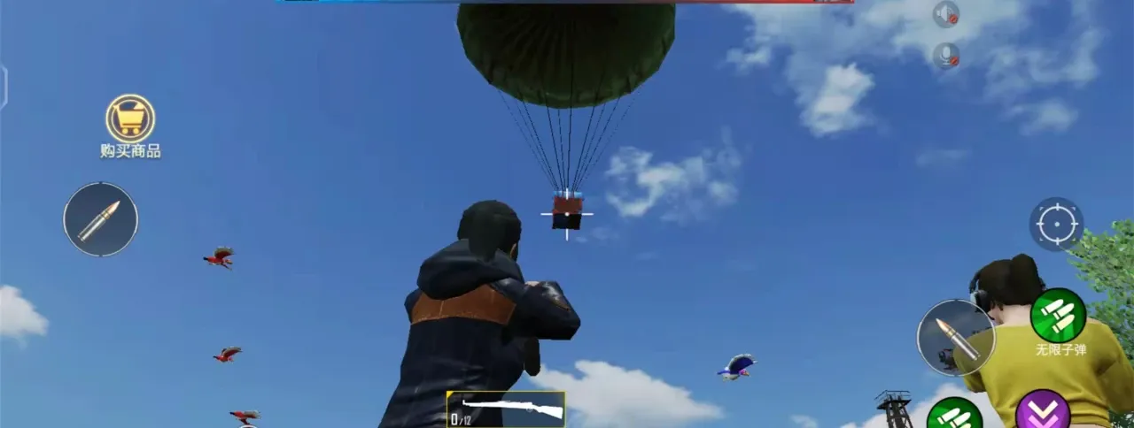 每轮开始前会给玩家提前准备时间,玩家可以提前买好装备,也可以用系统自带的装备进行比赛战斗,玩家也可以在游戏的过程中购买也是可以的,只要点击页面上的购买商品就可以了,里面有武器之类的道具可供玩家购买,玩家在游戏过程中一定要时刻的注意天上降落的物资,玩家用枪打落物资可以获得无限子弹的奖励,还可以获得飞行减速的功能,是鸭鸭们的飞行减速,以供玩家瞄准准确,还有的道具是让对方玩家定住5秒,不能动不能瞄准也不能开枪的道具。