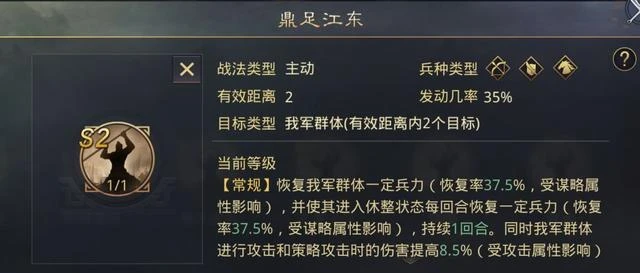 这类将领就能搭配鼎足江东、掎角之势、道行险阻、兼弱攻昧等攻击,盘算双收获的战法,到达对决法的借助提高小队实力。