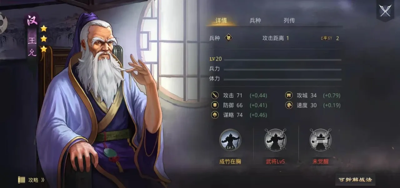 接下来介绍一下战法云梯这个战法的效果,这个战法的品质属于D级,能用这个战法的兵种类型只有步兵,这个战法的战法类型是指挥型,它的有效距离是三格,目标类型是我军群体有效距离内的三个目标,它的效果是在本场战斗中,会使我军步兵全体工程属性提高十点,在加成达到最高的时候可以提高20点。当然,这个加成属性是受到携带云梯战法武将的谋略属性的影响。