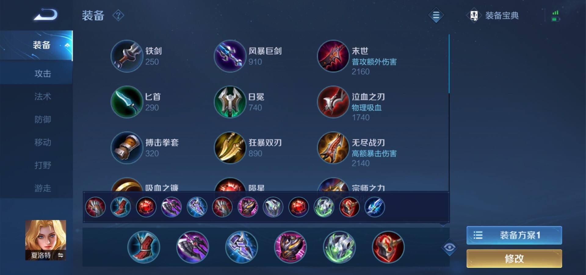 出装方面,因为夏洛特四级之前是比较脆的,所以第一件购买荆棘护手提高坦度,如果对线的是司空震就换成暗夜小甲。