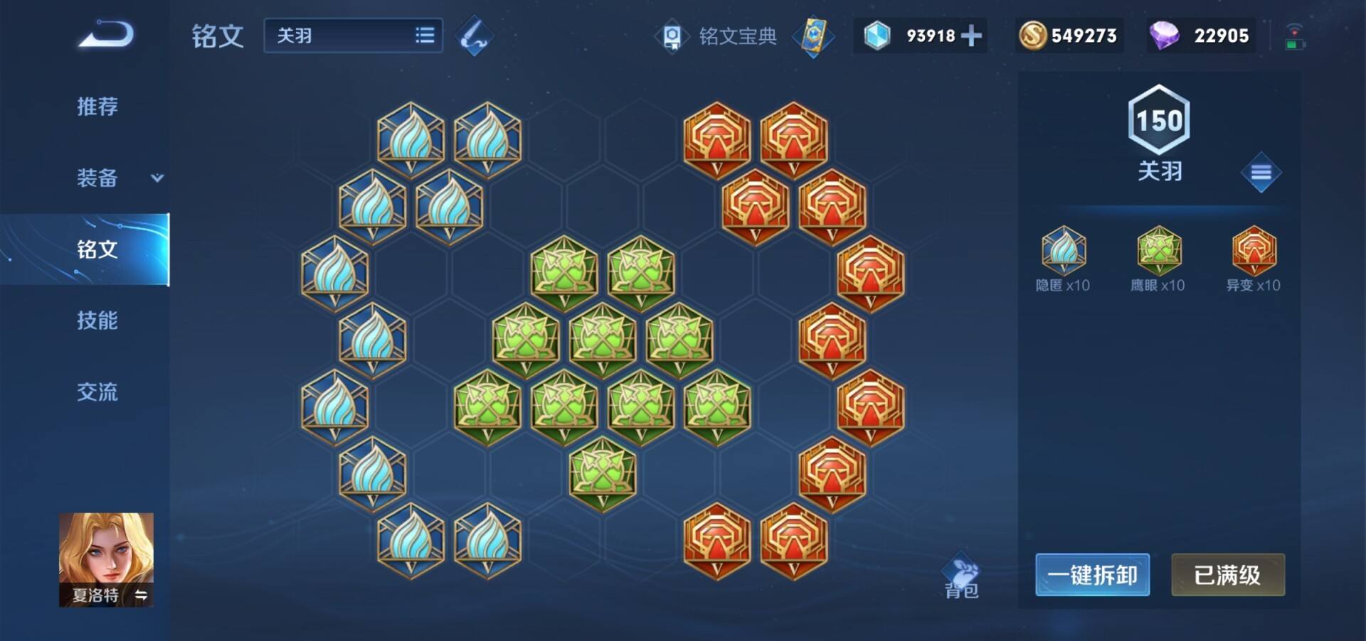 铭文带百穿就好了,红色10异变,蓝色10隐匿,绿色10鹰眼。