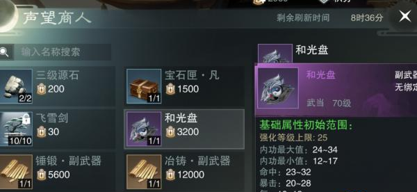副武器的选择比较有争议,有些玩家用战场装还有些玩家用副本装。两者属性相差不多,区别在于一个要用战场积分升级,一个要用师门积分升级。前者要花很多时间打打PK活动,后者要花花一点银子去刷寻道任务。我个人建议副武器还是用副本装吧,因为战场积分也不好攒,不要把升级装备的压力全部放在战场积分上。补充:副武器集市买不了,可以通过副本爆和师门积分换到。
