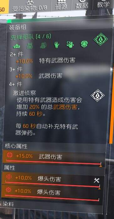 综合测试下,先锋狙可以稳定地做到20%武器伤害,这个伤害非常夸张,而且所有武器都能享受加伤,所有副武器带131或者M1A,爆头也有不俗的伤害,真正意义上的泛用型套装。