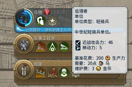 这是显而易见的,当步兵没有中古单位的时候,ai如果不出线比较偏的长矛,小马+投石在中期能依靠大军强拆各种古典城防的城市,而当ai出到弩,玩家可以继续升追猎来抗衡,而当加入科技线非常短的披甲(45力)后,小马将非常难打动披甲城防,追猎+投石也会很费劲,遇上披甲守城+首都+总督+难度加成+城墙,能有60防以上,实战还可能有军营等无法拆的区域,或者比较恶心的地形,对数量不容易成规模的追猎还是有一定影响