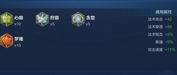 3、第一套铭文:10梦魇、5贪婪+5狩猎、10心眼
