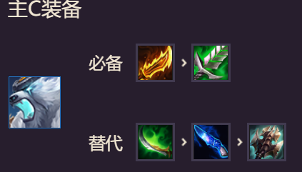解析:这个队伍的主要CARRY角色,汲取剑是一定要有的,火炮和鬼刀可以互换(最好是鬼刀),最后看情况上一把无尽之刃。