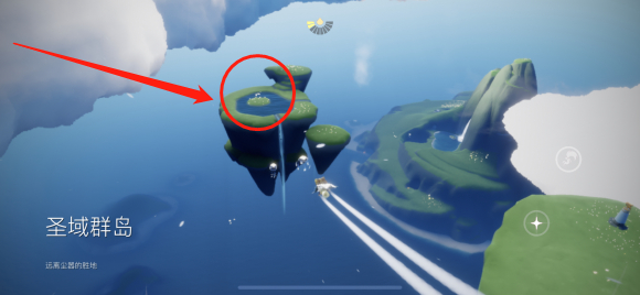 到达圣岛季地图后,我们降落在如图所示的小浮岛击杀如图所示的红色圆圈。