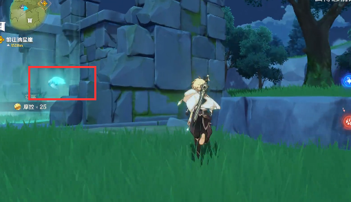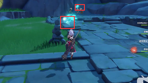 3.最后一个小精灵在悬崖下,面对着秘境之门的右上角。它是一块石头。你可以打开元素视图,用技能打碎石头,你会找到最后一个小精灵