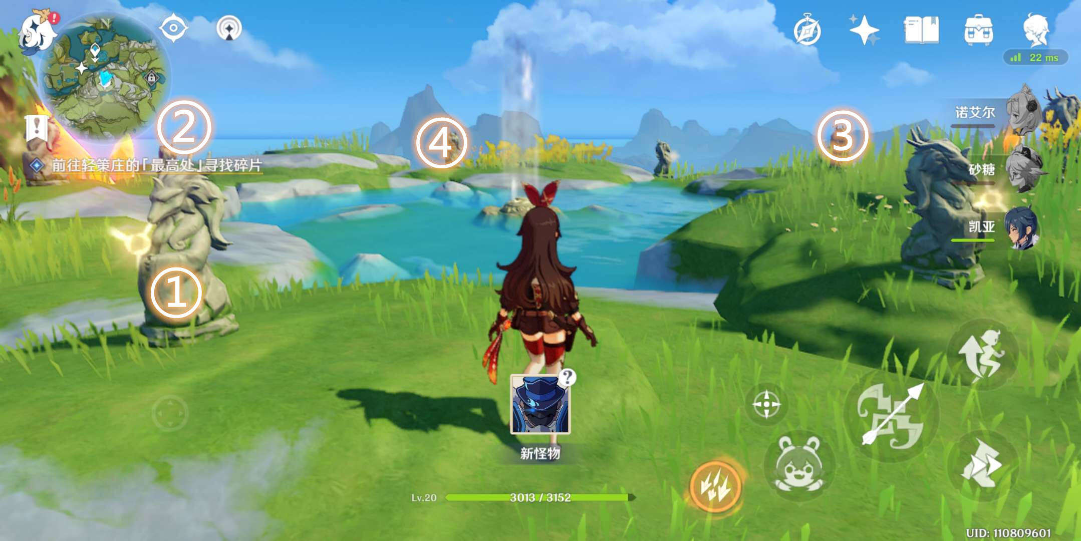 雕像的位置分别:面向风龙废墟、雪山、庆云顶、璃月港。