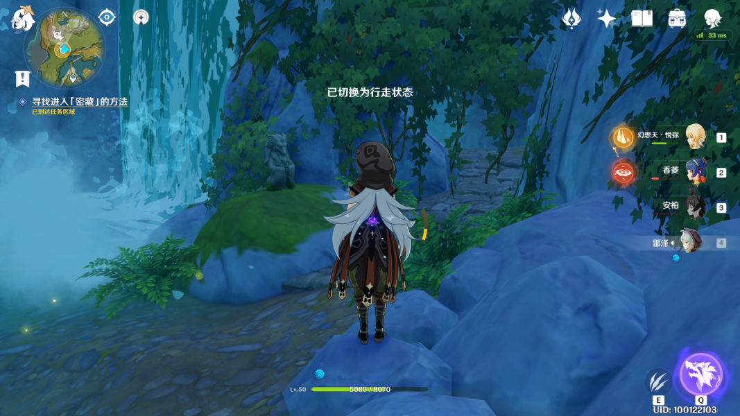 8、然后再回去和若心对话,根据任务的指引我们来到瀑布,瀑布的右边有一个入口洞穴。