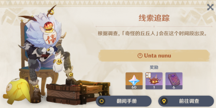 1、首先我们来卡看看任务线索:Unta nunu,意思是深夜时间(24:00-6:00);