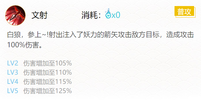 技能一:文射(普攻无消耗0火)