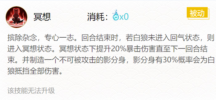 技能二:冥想(被动无消耗0火)