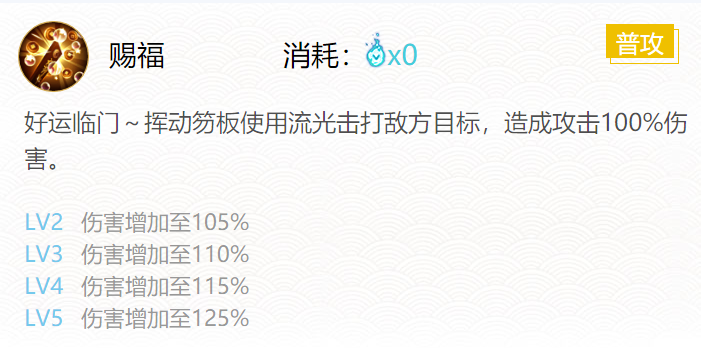一技能:赐福(普攻无消耗0火)