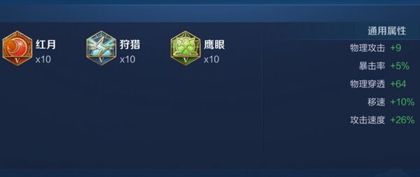 4、第二套铭文搭配:10红月、10狩猎、10鹰眼