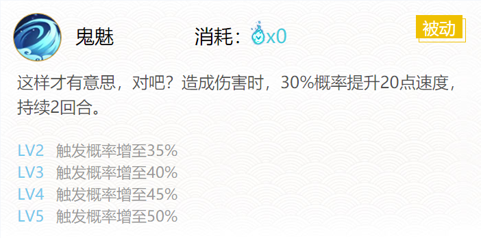技能二:鬼魅(0火)