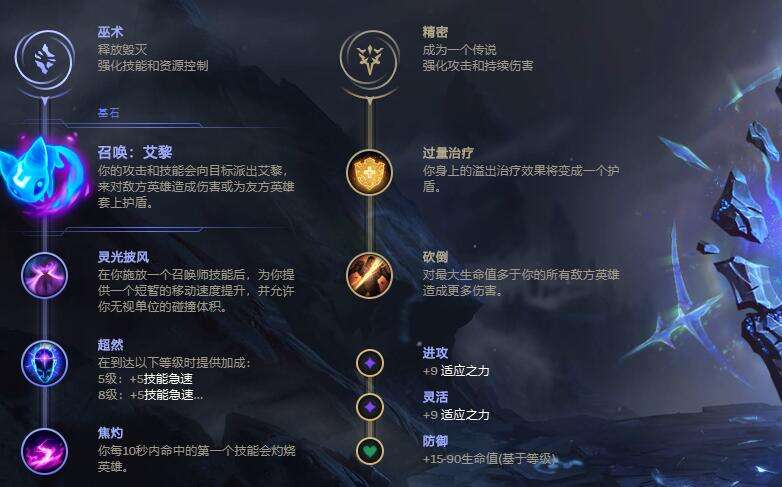 (1)主系符文:巫术+召唤艾黎+灵光披风+超然+焦灼;