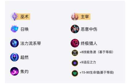 (2)副系符文:主宰+恶意中伤+终极猎人;