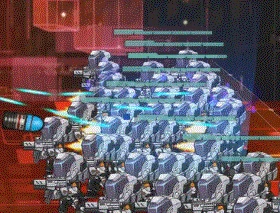 所示,ADS经过普攻开启了1次范围伤害。对准的指定目标是y=4的那组对手,但y=3,5的两队对手因为x坐标有绝对差异,因此也是吃到了爆炸伤害