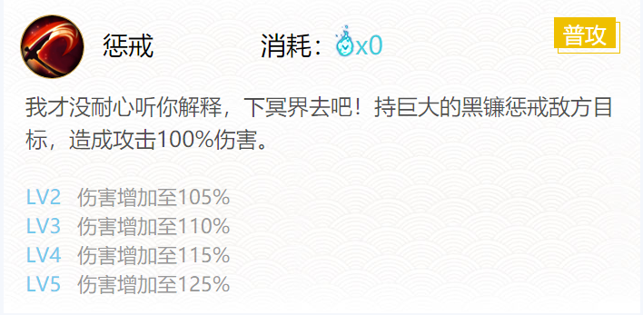 一技能:惩戒(普攻无消耗0火)