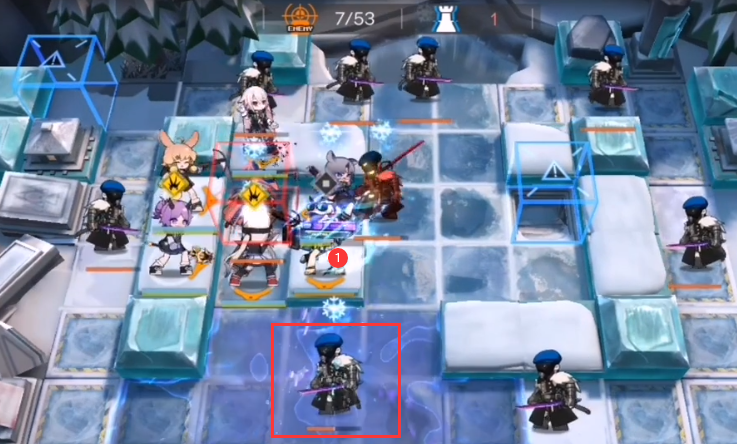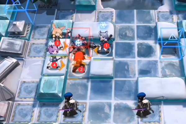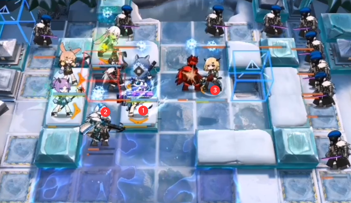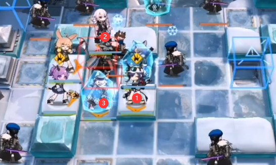 开局如下图所示布置:双先锋拍门 → 克洛丝(向右)→ 芙蓉(向右)