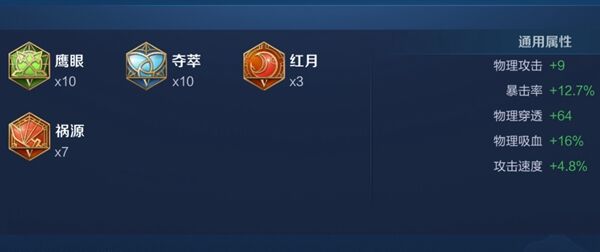 4、第二套铭文搭配:3红月+7祸源、10夺萃、10鹰眼