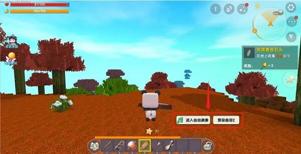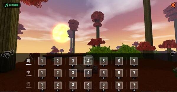 2、乐器所需要的材料其实并不多,玩家在冒险模式中基本都可以轻松收集齐,手里拿着乐器以后,就会出现如图所示的按钮。
