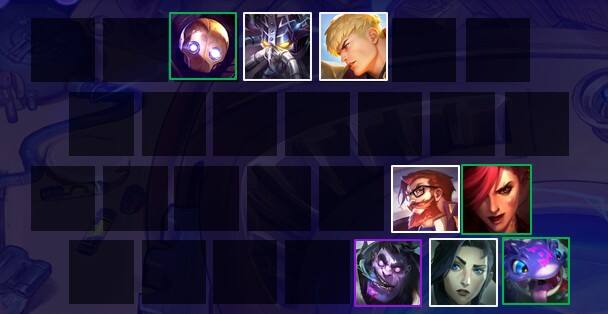 6阶段主要是上8人口,可以7人口先D一下机器和蔚的三星,最后的钱上8,然后蚂蚱换成蒙多,基本上就可以躺平了,机器在前主要是先秒前排,克制塞恩布隆,主要是克狙神和卡莎,机器在后,先秒后排,主要是克切入型对手,比如永恩,这样打完脆皮不杀坦克,立刻杀永恩。