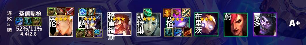 多段节奏D牌特别重要,选秀完再D一波,尽快的找出三星1费稳定3阶段的连胜,这里主要是兔子装备给错了,给水银会更胡,从这就开始轻松连胜了。