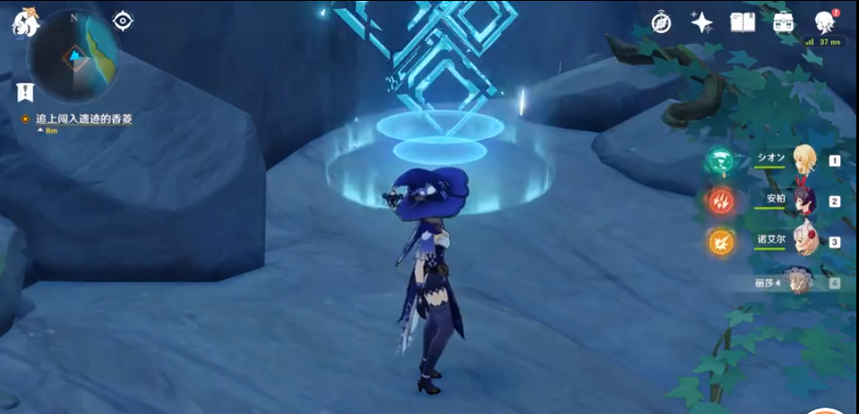 1、从山上跳下去,下面有一个结冰的河,里面就是遗迹入口,香菱的后面几个任务都在悬崖底下;