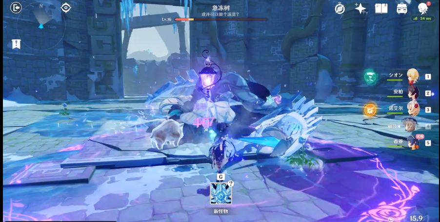 9、最后就是一个大boss,急冻树,这个其实也很好打,香菱、诺艾尔随便砍砍,几波大招,一分钟基本就能打完,打完拿宝箱,完成任务。