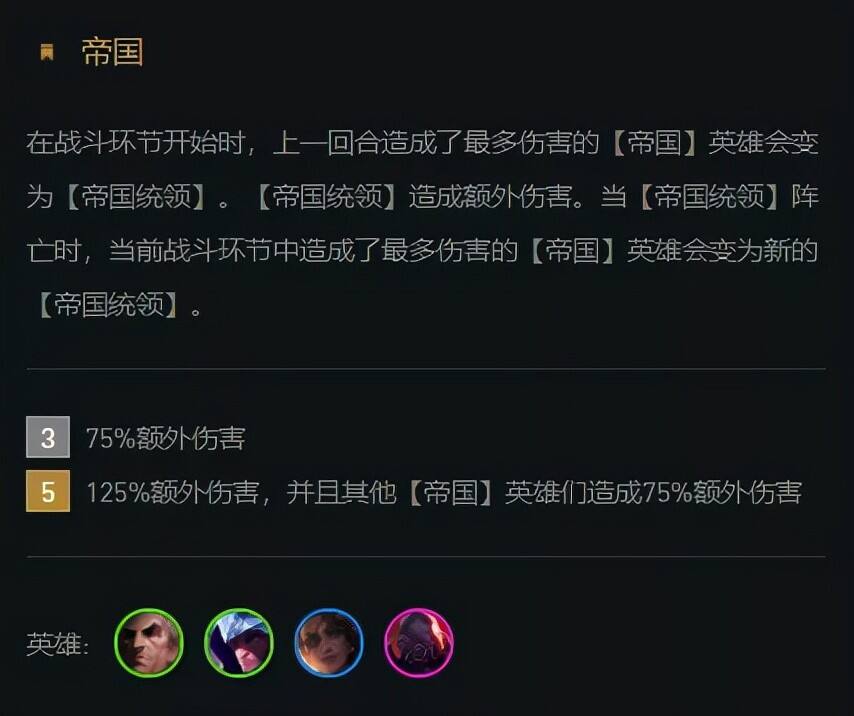 海克斯推荐帝国或挑战者羁绊的,人人为我、双人统治、挑战者之徽或亮出架势,提升1费和2费英雄的羽量级选手对男刀提升也非常大。